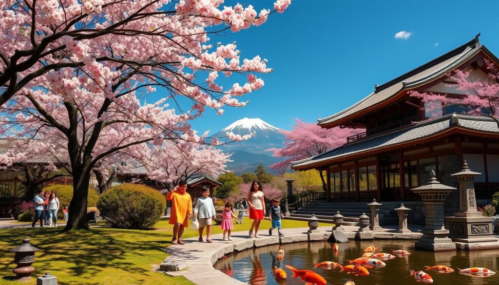 When planning a family trip to Japan, picking the right time is key. The cherry blossom bloom in April is stunning but very crowded. Spring and fall are better, offering a more relaxed trip for families.