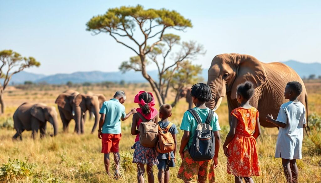 Kenya has over 30 wildlife reserves, offering a rich learning environment for kids. Places like the Tsavo National Park and the Maasai Mara Game Park are amazing. They let kids see Africa’s iconic animals up close.