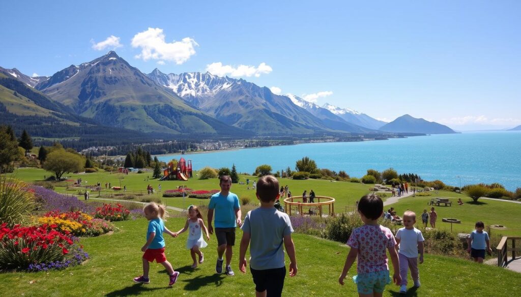 New Zealand is a great place for families with kids. It’s safe and relaxed, perfect for a family trip. You’ll find lots of places that welcome families and offer special deals.