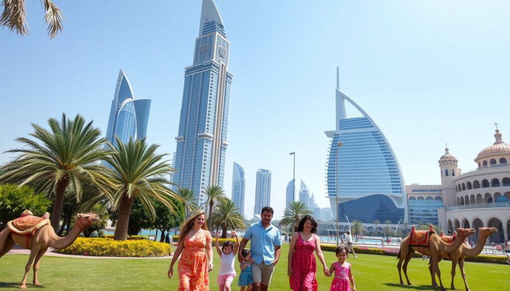 The United Arab Emirates is a top spot for family trips. It mixes modern sights, rich culture, and stunning nature. Places like Dubai and Abu Dhabi offer fun for all ages.